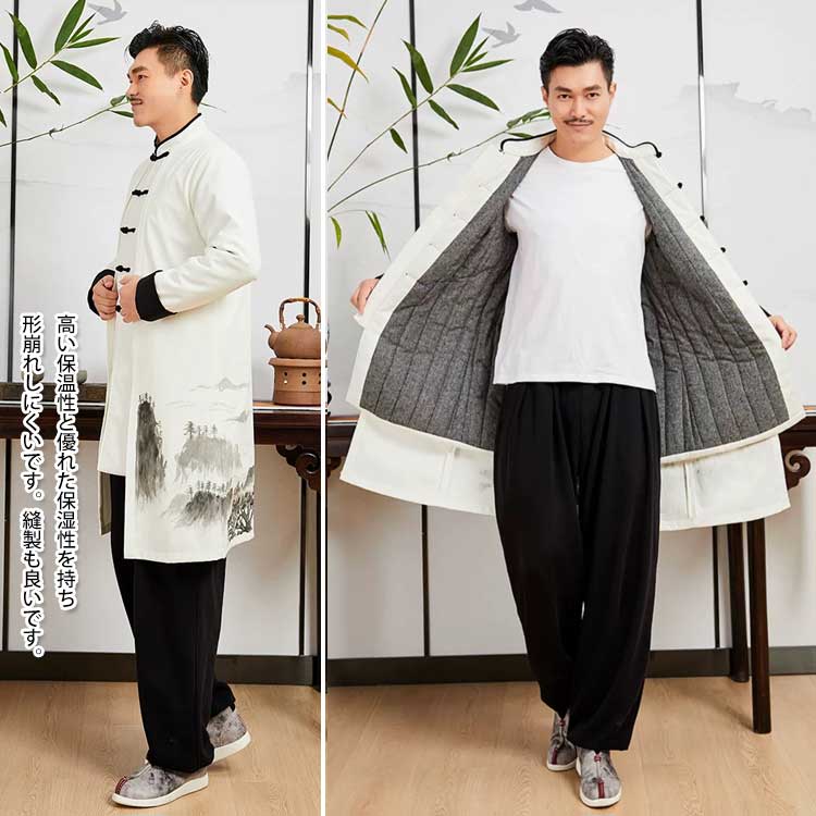 商品紹介 暖かい加厚棉素材で肌触りがよく丈夫です。裏地の縫製により冬は暖かく、中国武術太極拳選手から愛用されている上着です。太極拳や道士服として、また普段着のジャケットやコートとしても使えます。