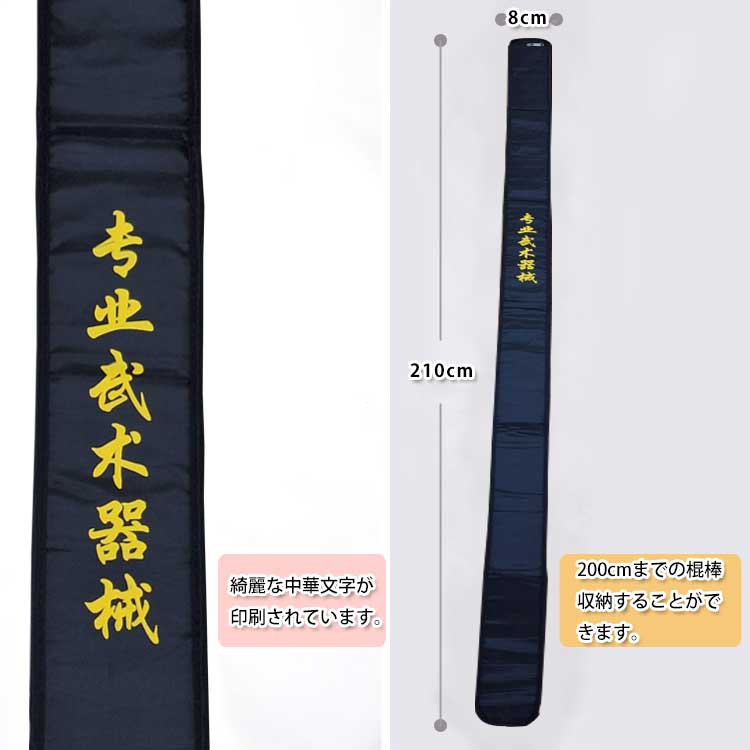 商品説明 棍棒を1〜2本まで収納ができる専用器械袋です。200センチまでの長さの棍棒を入れる事ができます。お車から会場までの移動に便利です。