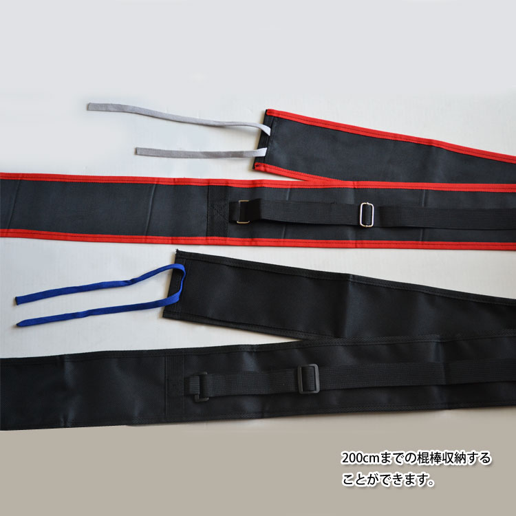 棍棒を2〜3本まで収納ができる専用器械袋。 200センチまでの長さの棍棒を収納することができます。